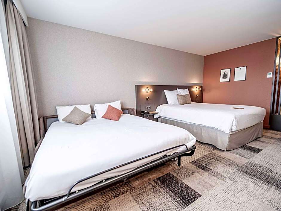 With a garden, this room has a double bed for 2 people and a sofa bed for 2 children, a flat-screen TV, free WiFi access and tea and coffee making facilities. It can accommodate a third adult at an extra cost. 4 people maximum so 3 adults + 1 child.